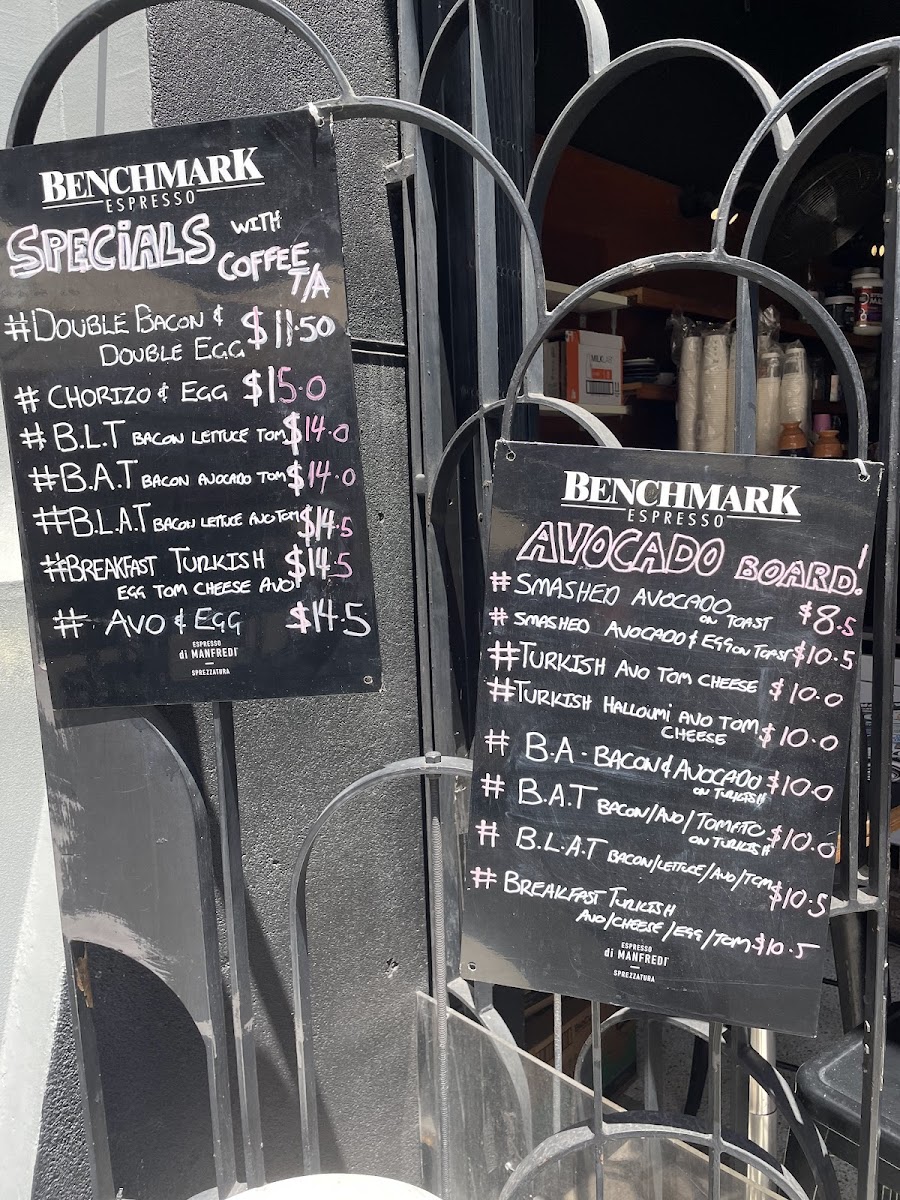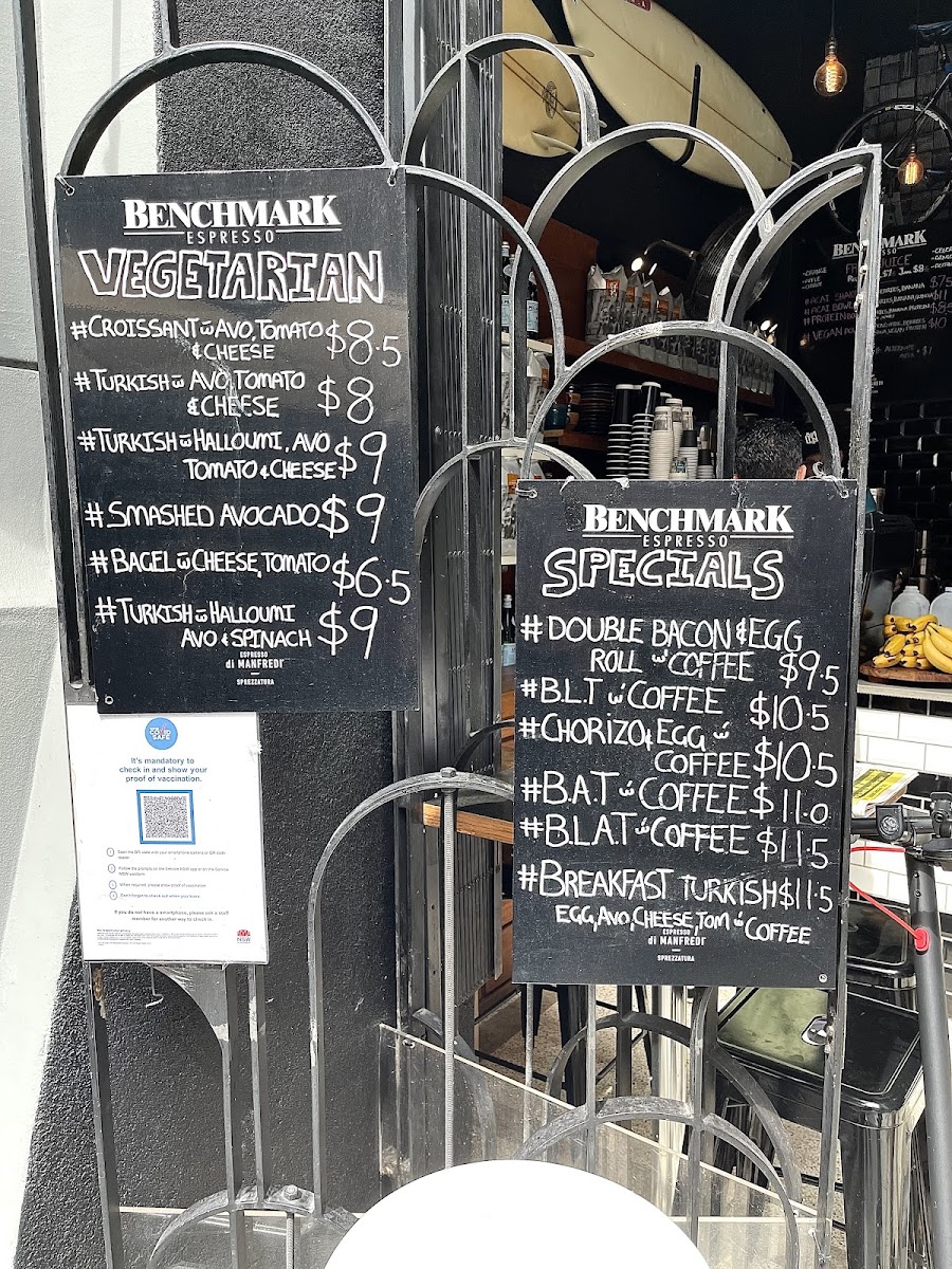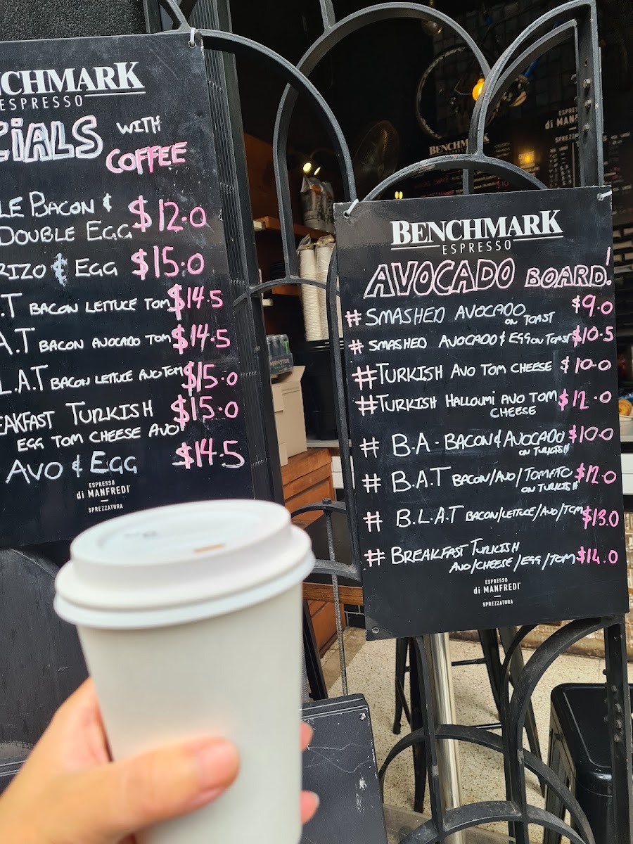 Benchmark Espresso’s menu offers a diverse selection catering to various tastes, with a special focus on fresh and flavorful breakfast options. For a quick bite, the Bacon, Egg & Cheese Toastie and Haloumi B.L.T stand out, alongside the lighter Cheese & Vegemite Brioche Roll. The breakfast section is equally enticing, featuring options like the Smashed Avocado on toast or the more hearty B.L.A.T sandwich with bacon, lettuce, avocado, and tomato. For those craving something more substantial, the Chorizo & Egg Roll or the B.L.T provide filling options. Health-conscious patrons will appreciate the Protein Boost Shake and the Vegan Power Shake, while the Açaí Shake offers a refreshing and nutritious option. The Avocado Board section is a highlight, with creative offerings such as the Breakfast Turkish with avocado, cheese, egg, and tomato, or the Turkish Halloumi with avocado, tomato, and cheese. For a well-rounded coffee experience, customers can enjoy classics like Flat White and Cappuccino, alongside indulgent drinks such as Hot Chocolate and Mocha. Cold drinks like the Iced Latte and Iced Long Black are ideal for a refreshing break. Panini lovers can indulge in the Benchmark Burger or the Chorizo Roll, while tea enthusiasts will find comfort in large servings of Chamomile or English Breakfast tea. The menu is a perfect blend of traditional favorites and modern twists, making it a great spot for breakfast or a midday refreshment.